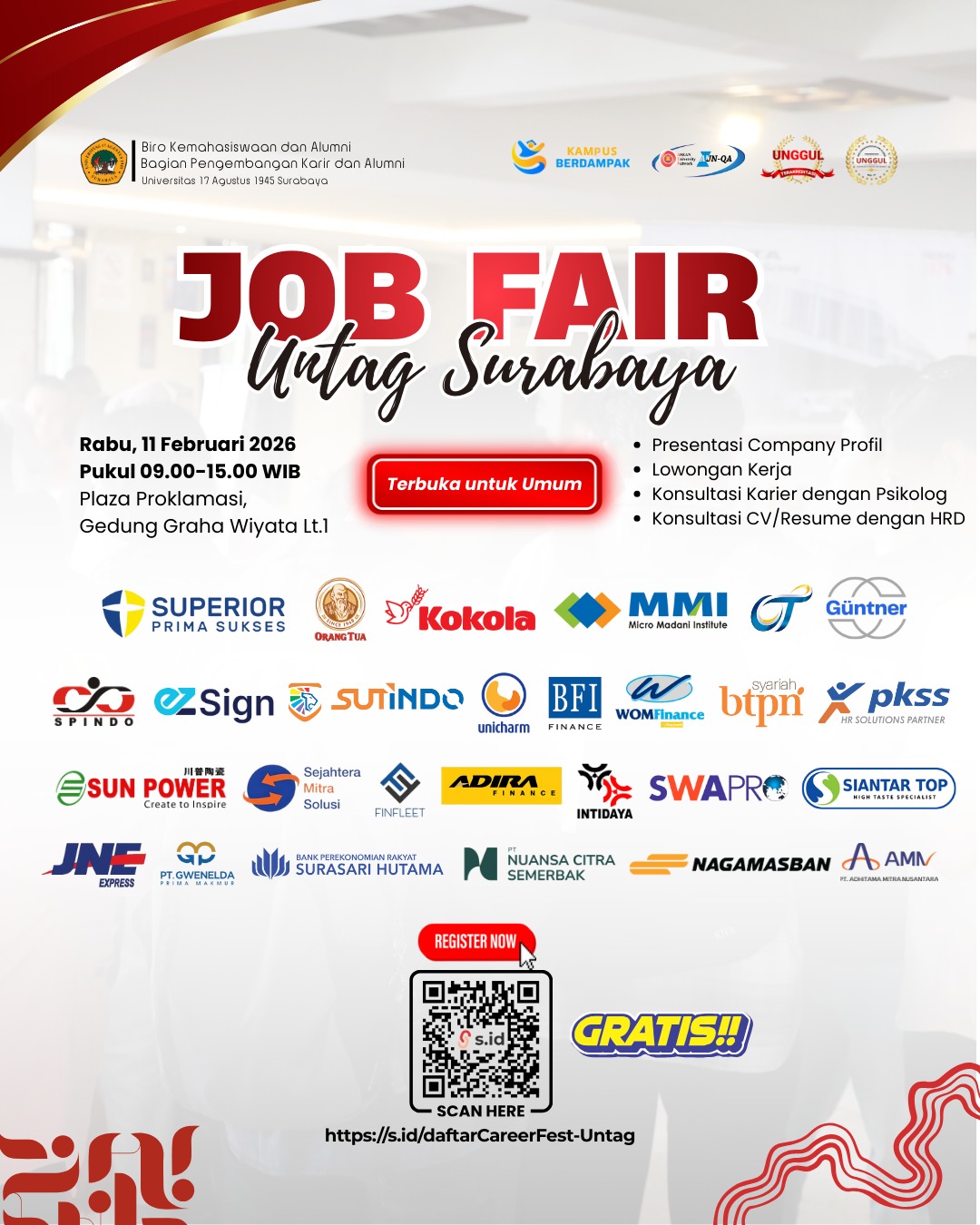 #UntagCareerFest #UntagCareerMatters #AlumniUntagSurabaya #InfoLoker #UntagSurabaya #FutureLeaders #SiapKerja #jobfairsurabaya