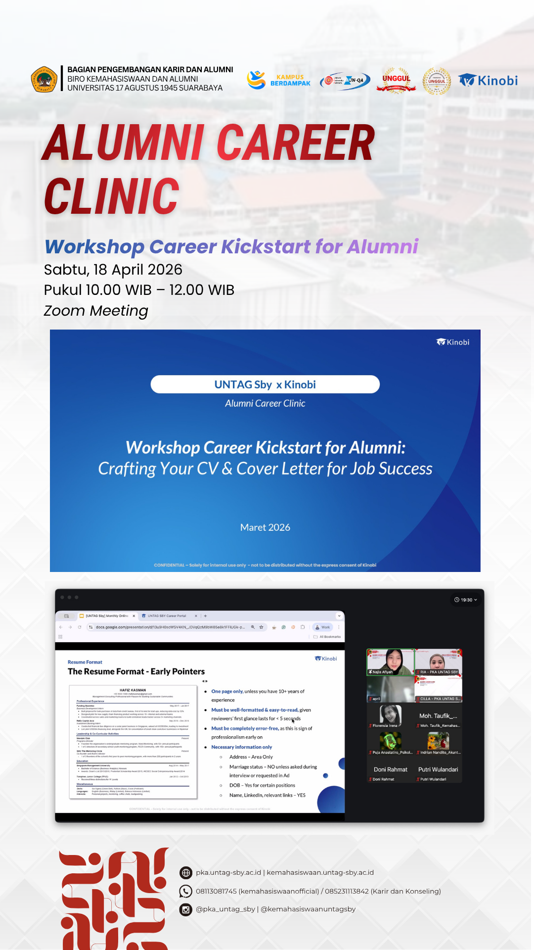 PKA Untag Surabaya berkolaborasi dengan Kinobi mengadakan program Alumni Career Clinic. Program ini dirancang khusus untuk membantu kamu membedah strategi karier agar lebih diliri... Read More