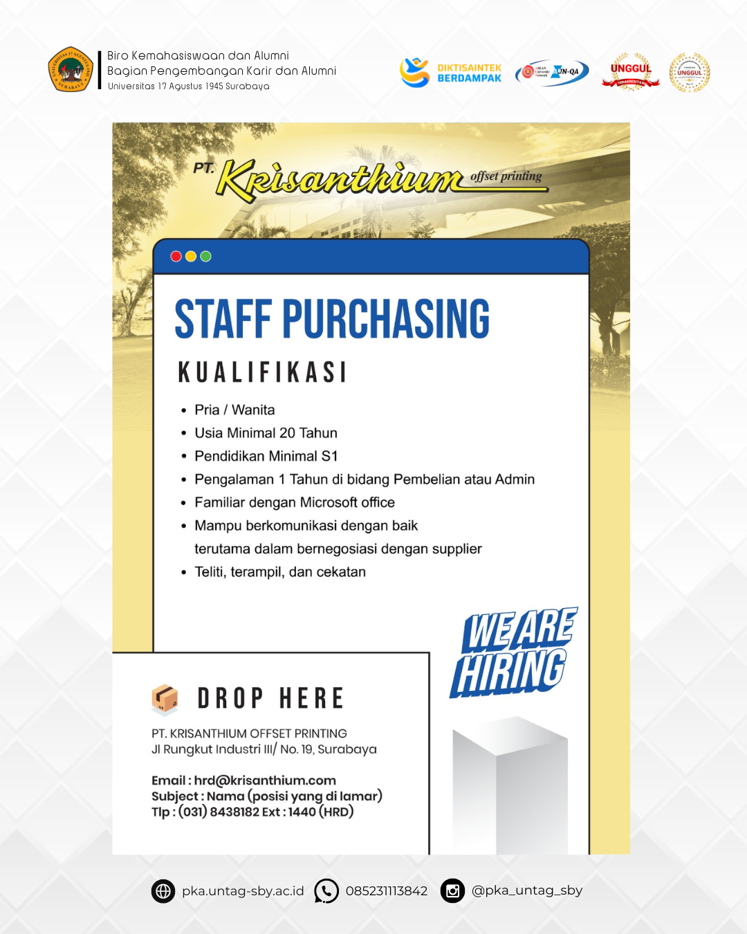 Kategori Posisi : Staff Purchasing PT Krisanthium Offset Printing