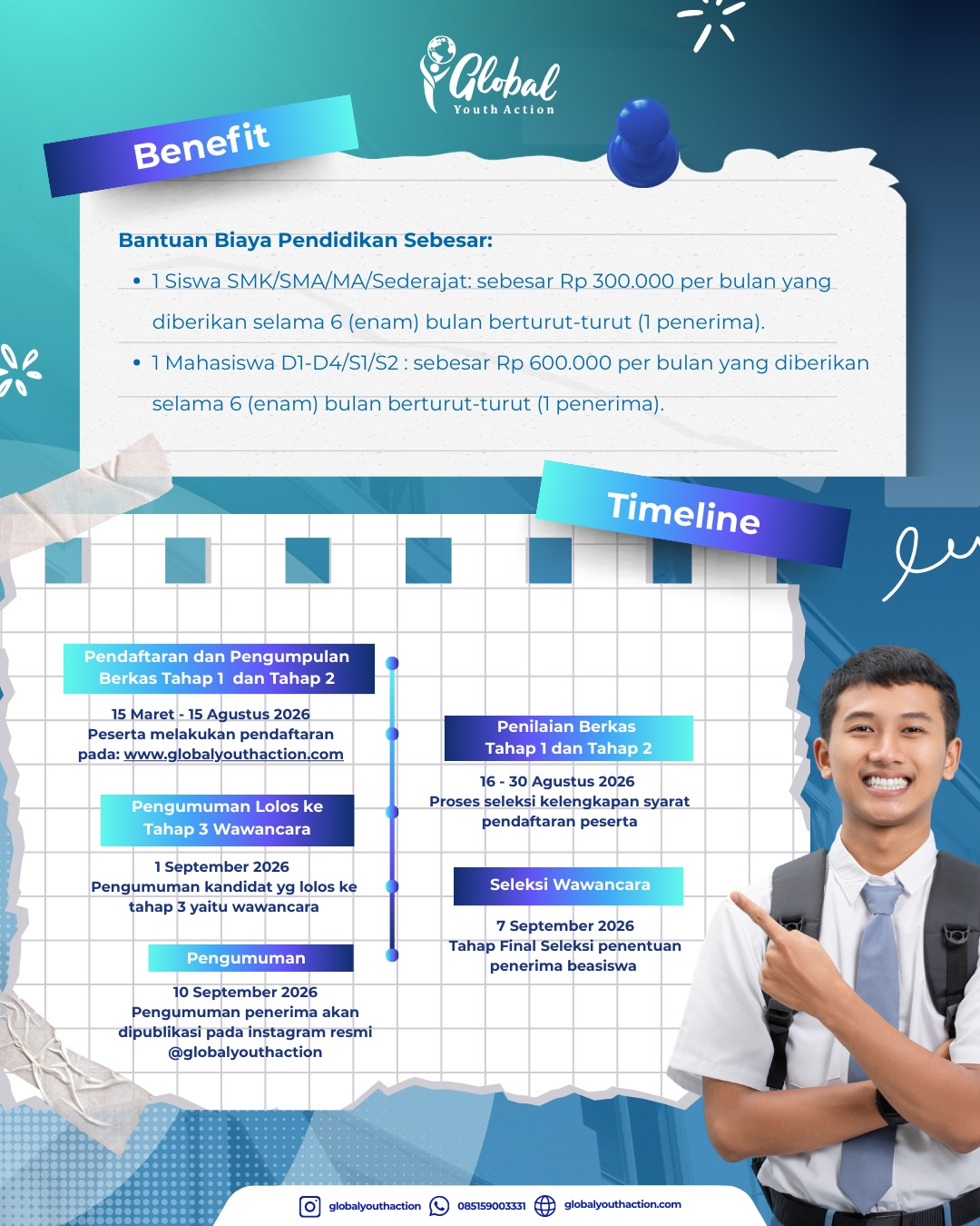 #Beasiswa2026 #BeasiswaIndonesia #BeasiswaMahasiswa #GlobalYouthAction #BeasiswaGratis