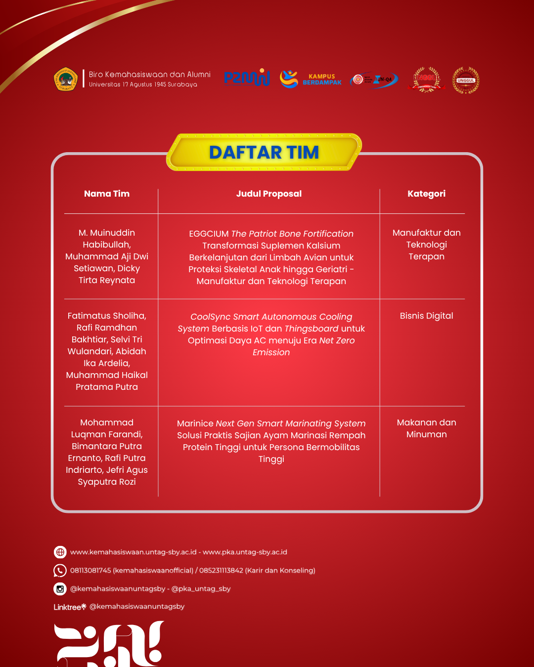 Adapun tim yang dinyatakan lolos seleksi internal P2MW Untag Surabaya antara lain: